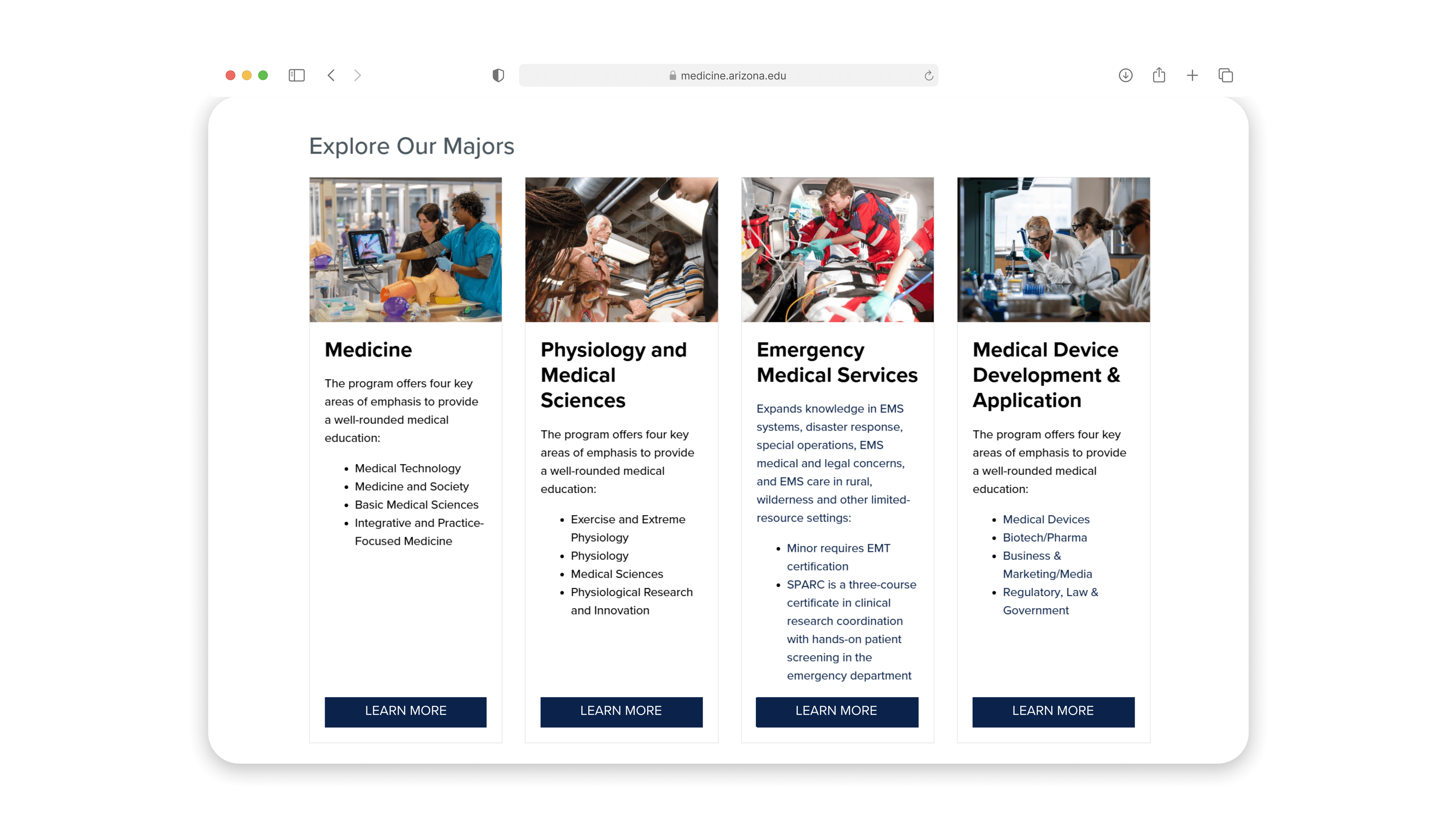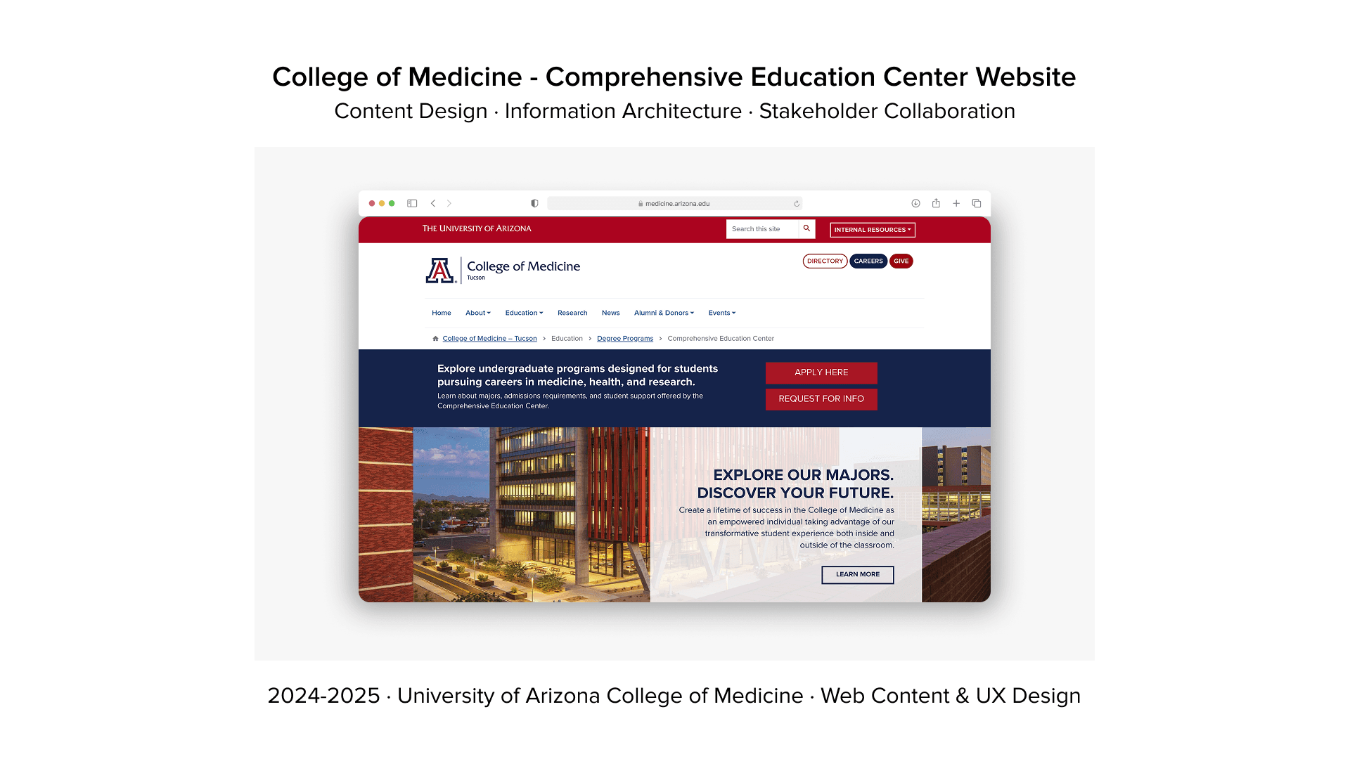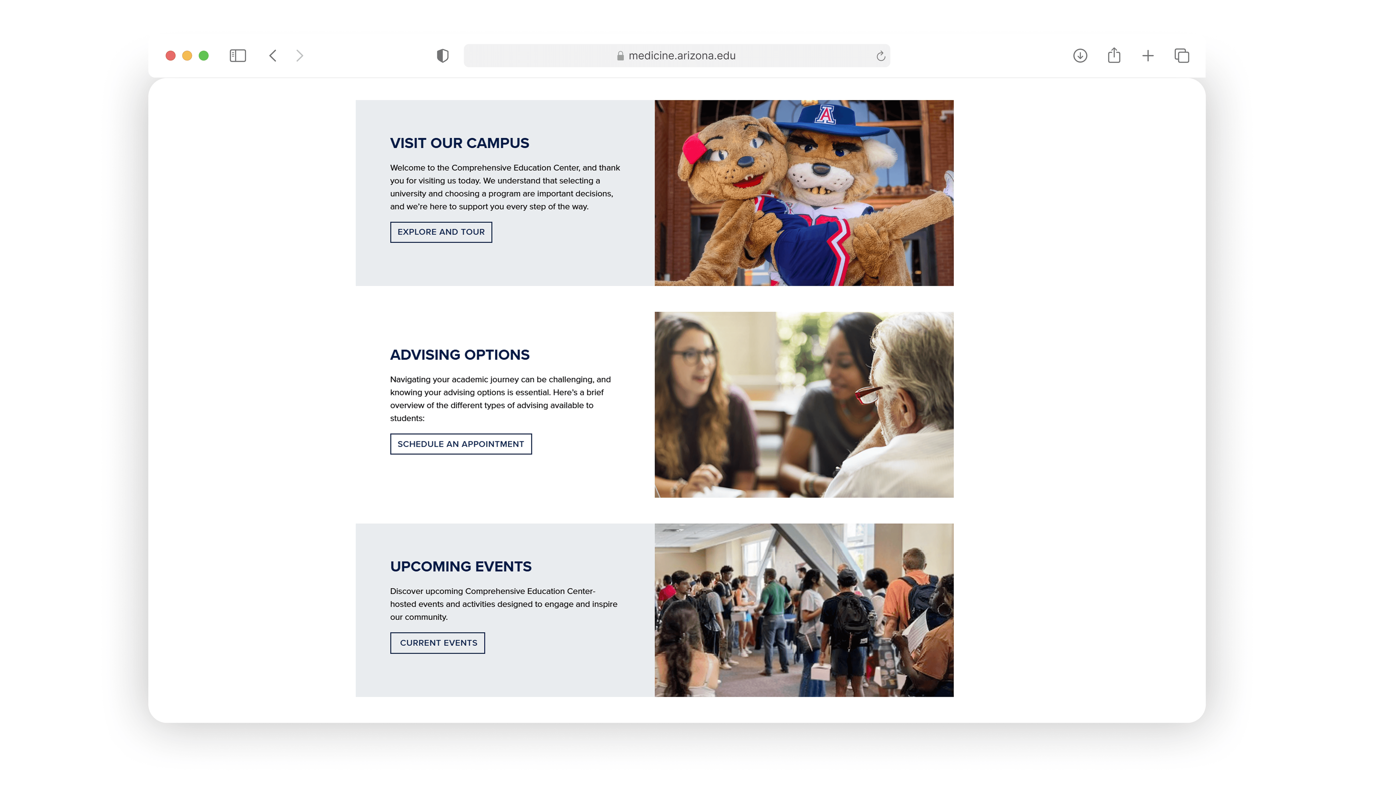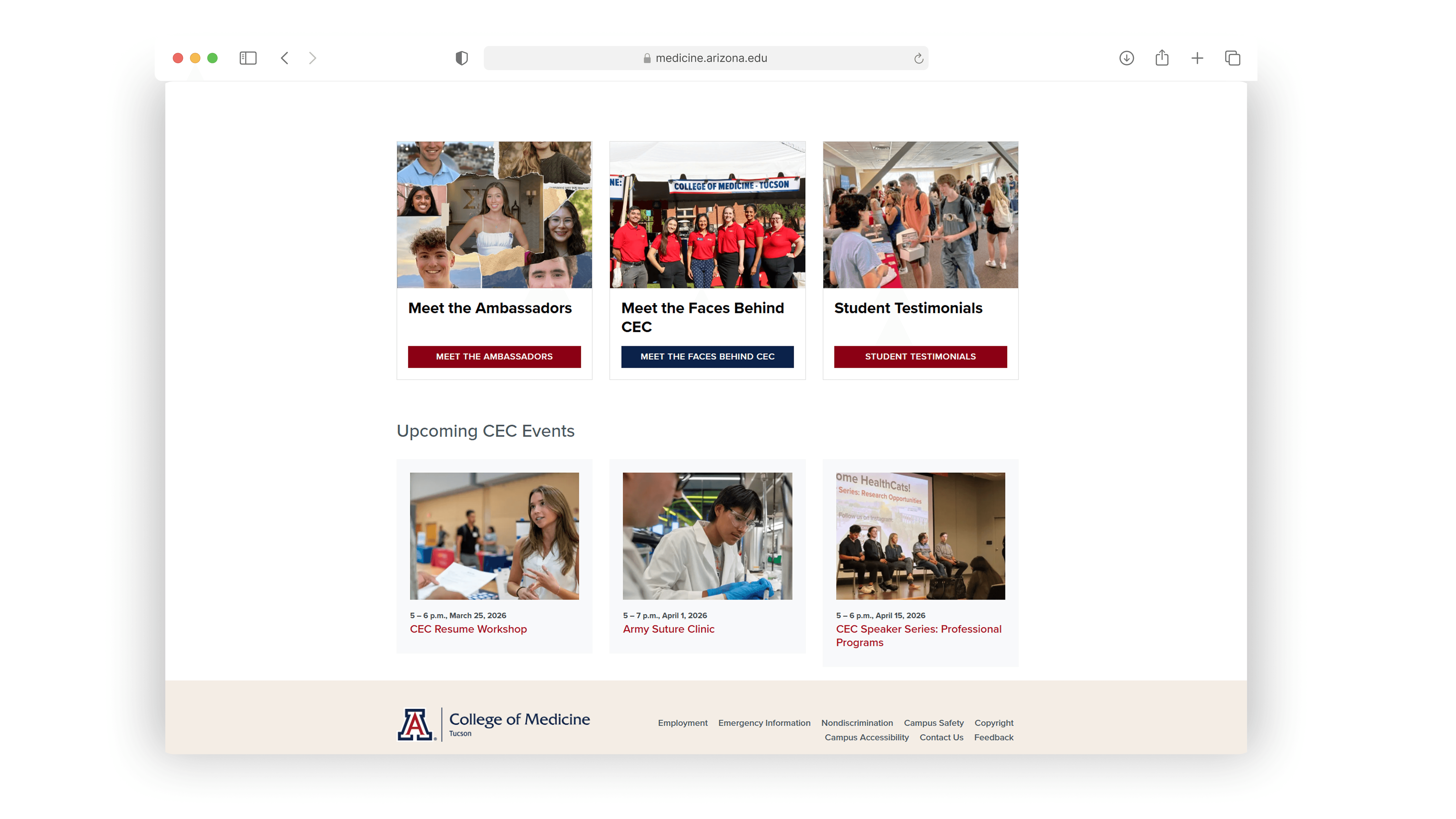 The University of Arizona College of Medicine – Tucson was launching the Comprehensive Education Center (CEC), a brand-new department designed to support undergraduate pre-med students. The CEC needed a digital presence from scratch to serve as the central hub for academic advising, research opportunities, volunteer programs, clubs, mentoring, jobs/internships, and student resources.