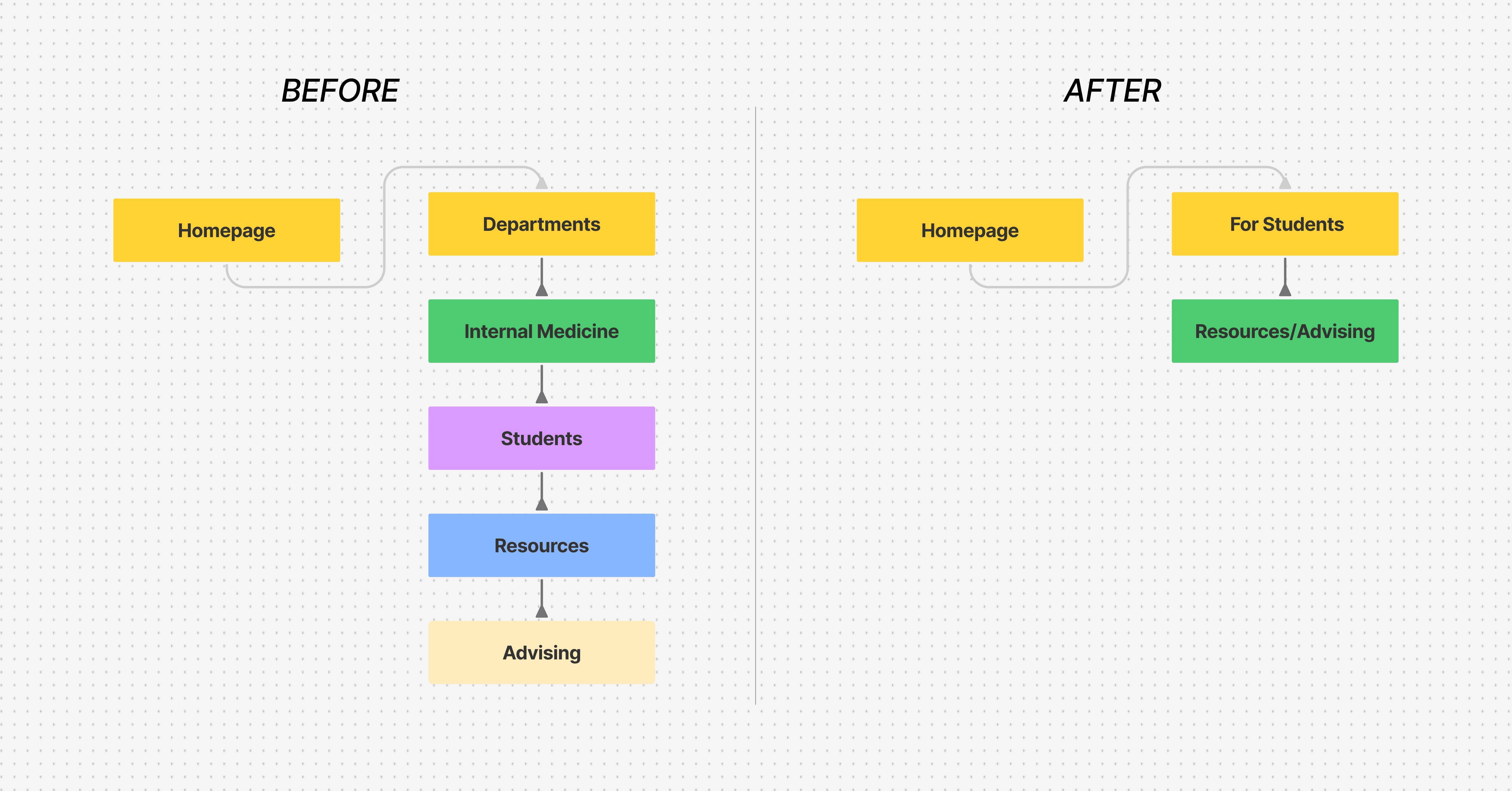 Designing for a medical college meant understanding diverse user groups with conflicting needs: students looking for course information, parents seeking admissions details, faculty needing administrative tools, and a new department requiring its own identity within the larger system.