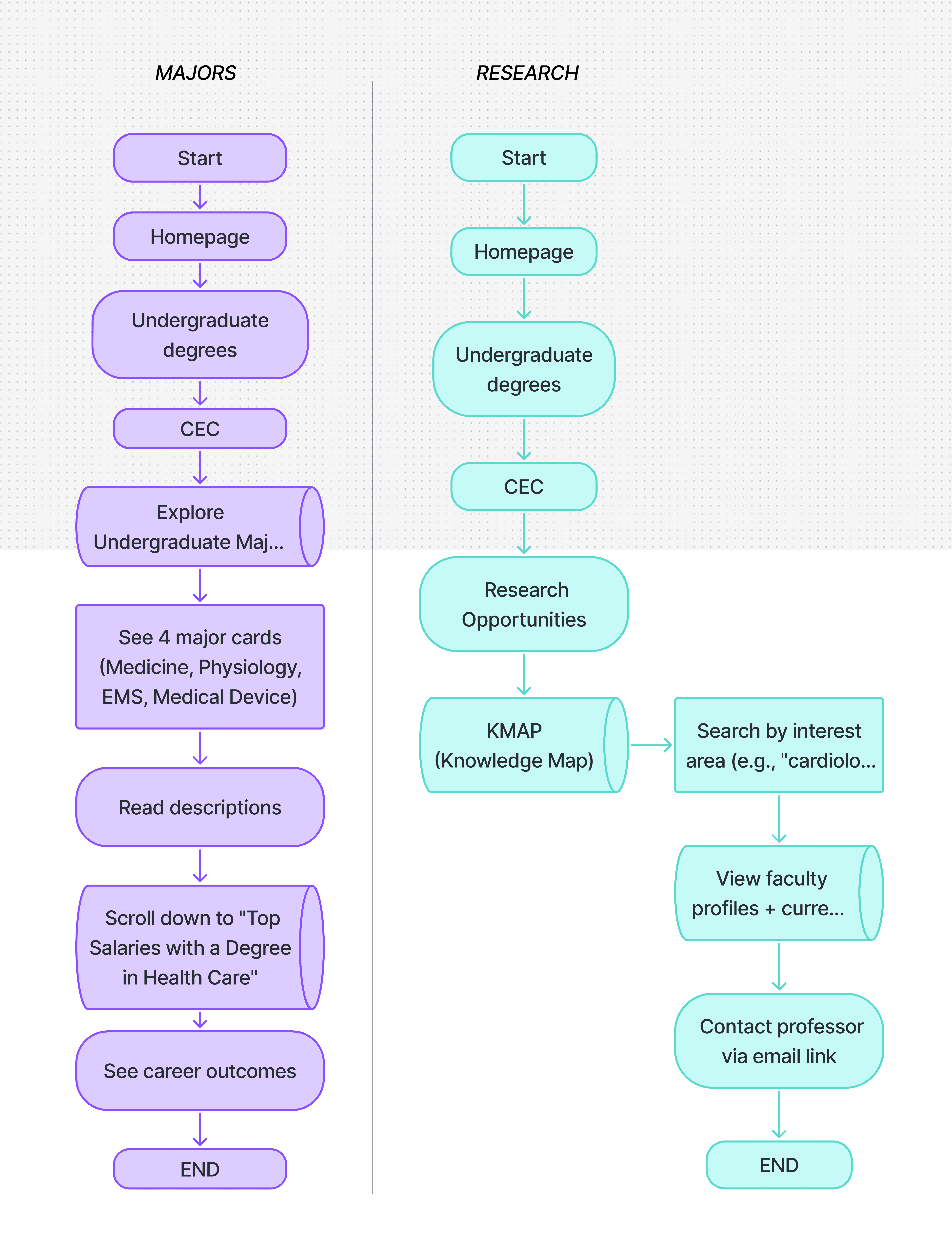 User Flows: Exploring Majors vs. Finding Research